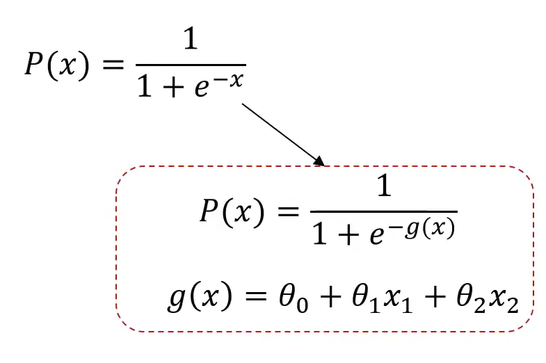 逻辑回归实际上就是在多元线性回归(θᵀx)的基础上,多嵌套了一个函数,这个函数就是 sigmoid 函数,也被称为 S 型曲线。