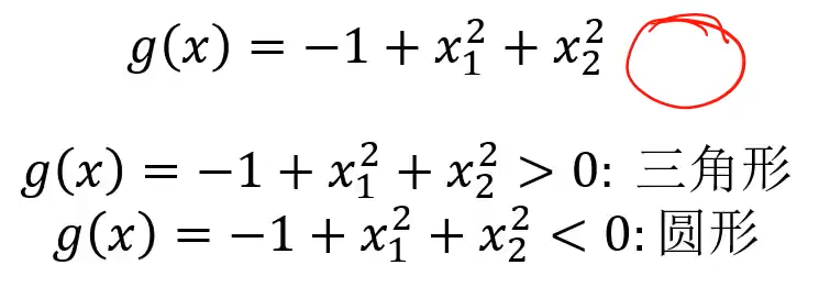 圆形的 g(x) 与直线的 g(x) 不同,新增了2此项。由此获取一个曲线或者圆形。