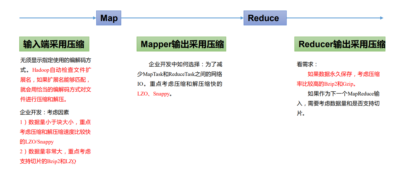 四:压缩位置选择 压缩可以在 MapReduce 作用的任意阶段启用。