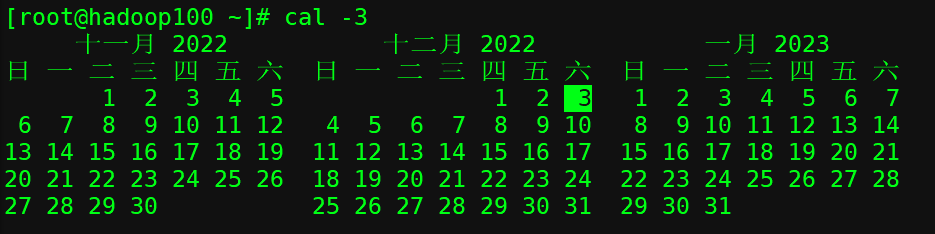 - cal [选项] (功能描述:不加选项,显示本月日历)