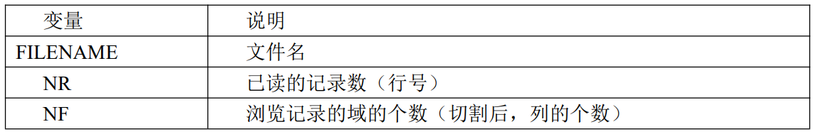 | # 统计 passwd 文件名,每行的行号,每行的列 awk -F ":" '//{print "文件名称:"FILENAME, "行号:"NR, "列数:"NF}' /etc/passwd