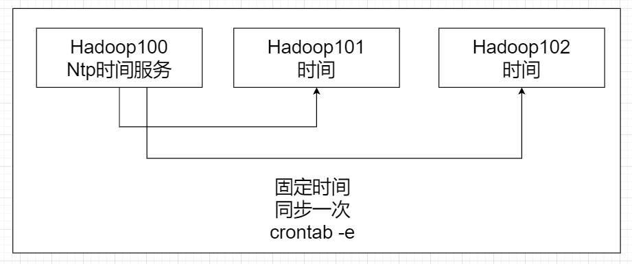# 编写定时任务 [ghost@hadoop101 hadoop-3.3.4]$ crontab -e */1 * * * * /usr/sbin/ntpdate hadoop100 [ghost@hadoop102 hadoop-3.3.4]$ crontab -e */1 * * * * /usr/sbin/ntpdate hadoop1001