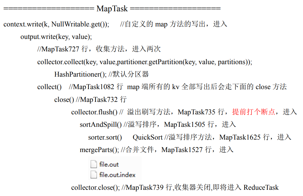 当所有数据处理完后,MapTask 会将所有临时文件合并成一个大文件,并保存到文件 output/file.out 中,同时生成相应的索引文件 output/file.out.index。