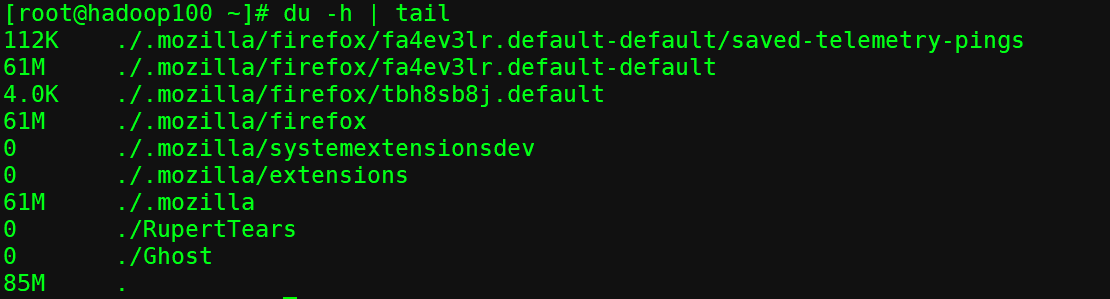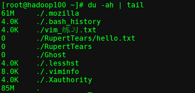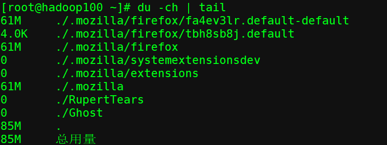 - du 目录/文件 (功能描述:显示目录下每个子目录的磁盘使用情况)