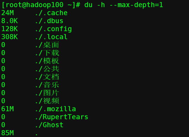 (4)du -h –max-depth=1 统计当前目录下所有子目录信息