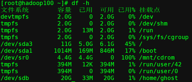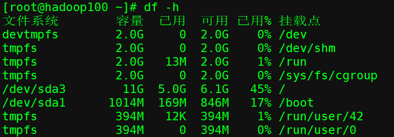 - -f 查看详细的设备挂载情况,显示文件系统信息