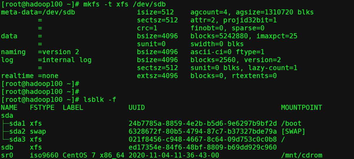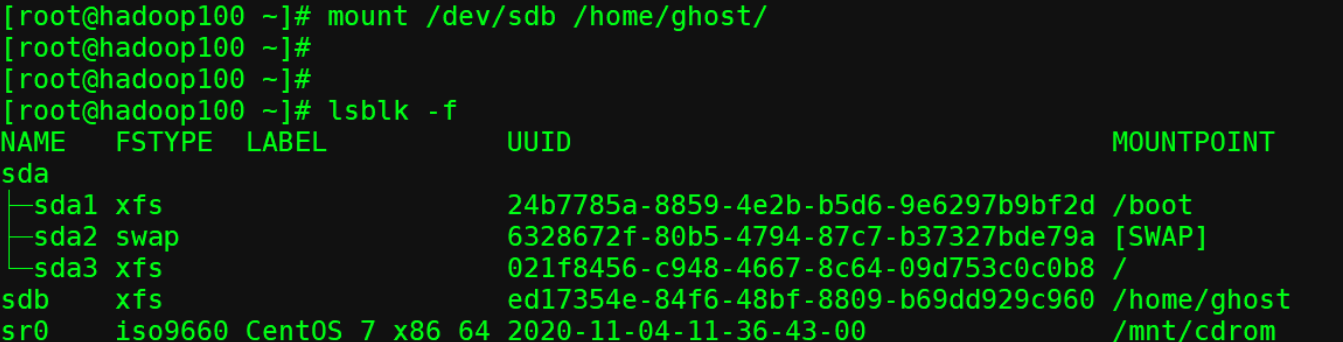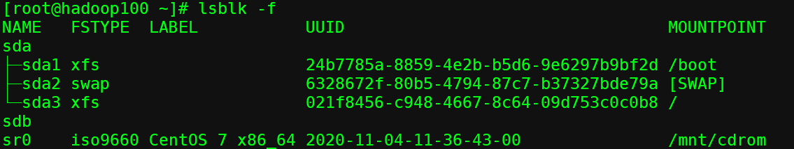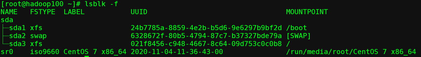 (2)lsblk -f 查看详细的设备挂载情况,显示文件系统信息