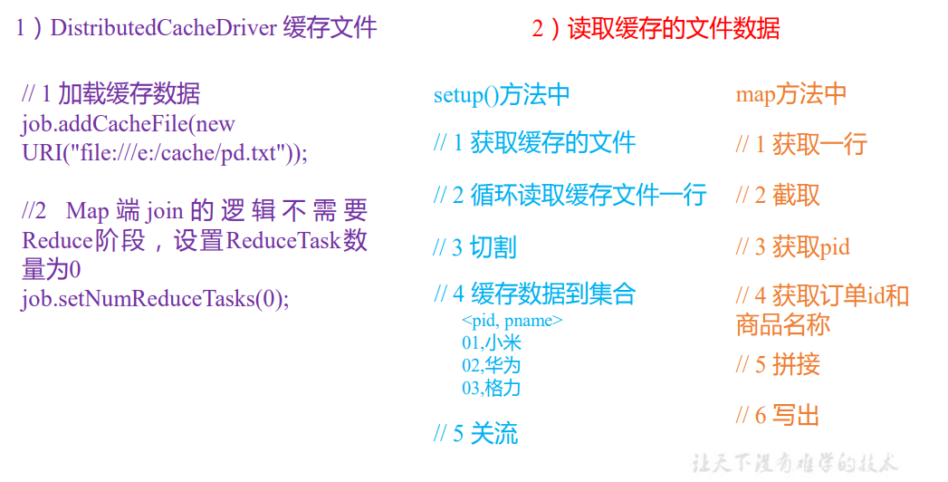 3.3 实现手段——采用 DistributedCache (1)在 Mapper 的 setup 阶段,将文件读取到缓存集合中。