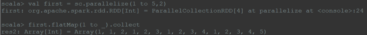1 | val first = sc.parallelize(1 to 5,2) |