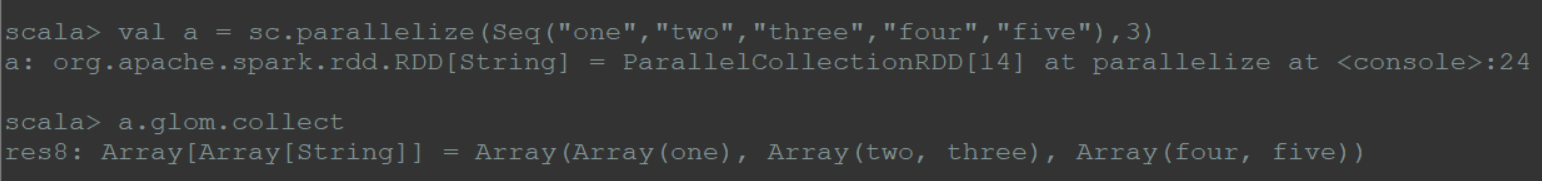 1 | val a = sc.parallelize(Seq("one","two","three","four","five"),3) |