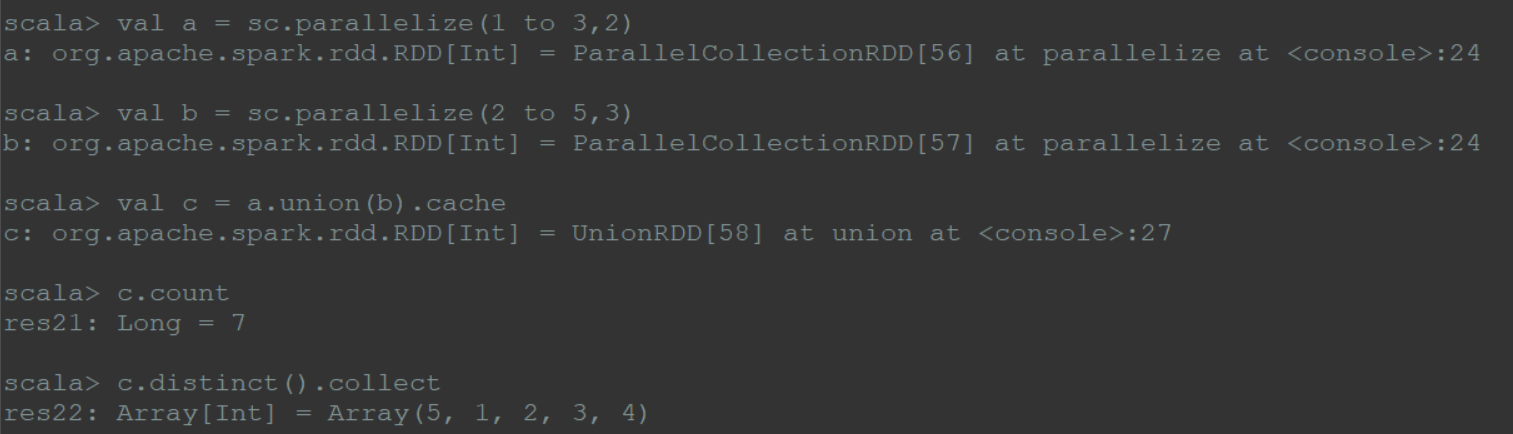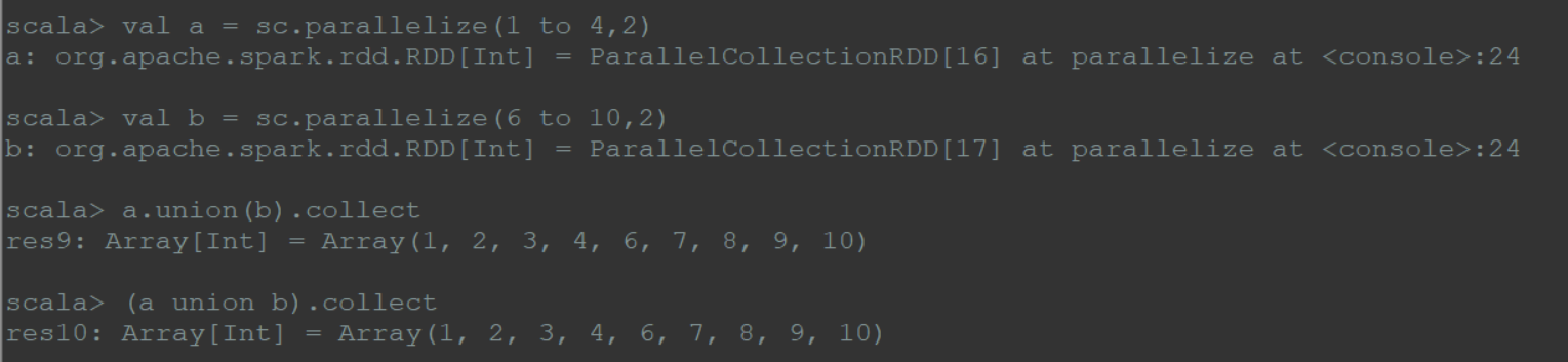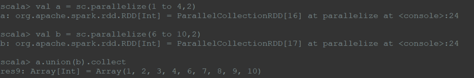 将2个rdd合并成一个rdd,不去重;有时可能会发生多个分区合并成一个分区的情况。