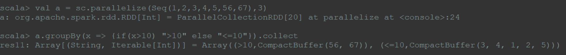 1 | val a = sc.parallelize(List(("one",1),("two",2),("three",3)),3)(最后的3 代表3个分区) |