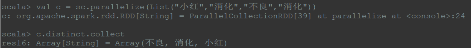1 | val c = sc.parallelize(List("小红","消化","不良","消化")) |
