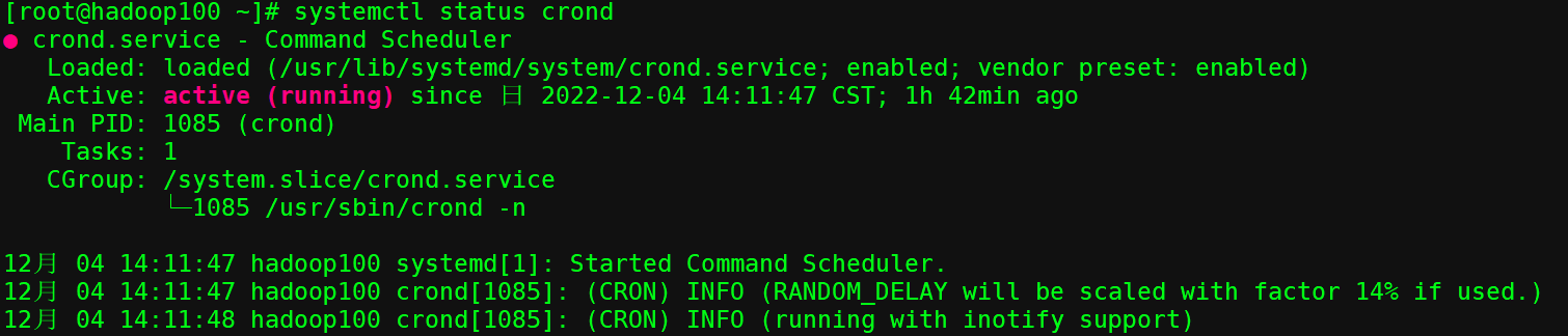1 | [root@hadoop100 ~]# systemctl restart crond |