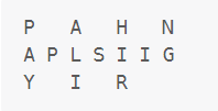 /** * Author: Rupert Tears * Date: Created in 18:54 2022/11/12 * Description: Thought is already is late, exactly is the earliest time. * Z 字形变换 * 将一个给定字符串 s 根据给定的行数 numRows ,以从上往下、从左到右进行 Z 字形排列。 * 之后,你的输出需要从左往右逐行读取,产生出一个新的字符串 * <p> * 比如输入字符串为 "PAYPALISHIRING" 行数为 3 时; * 输出需要从左往右逐行读取,产生出一个新的字符串为:"PAHNAPLSIIGYIR"。 */ publicclassAigo_006 {